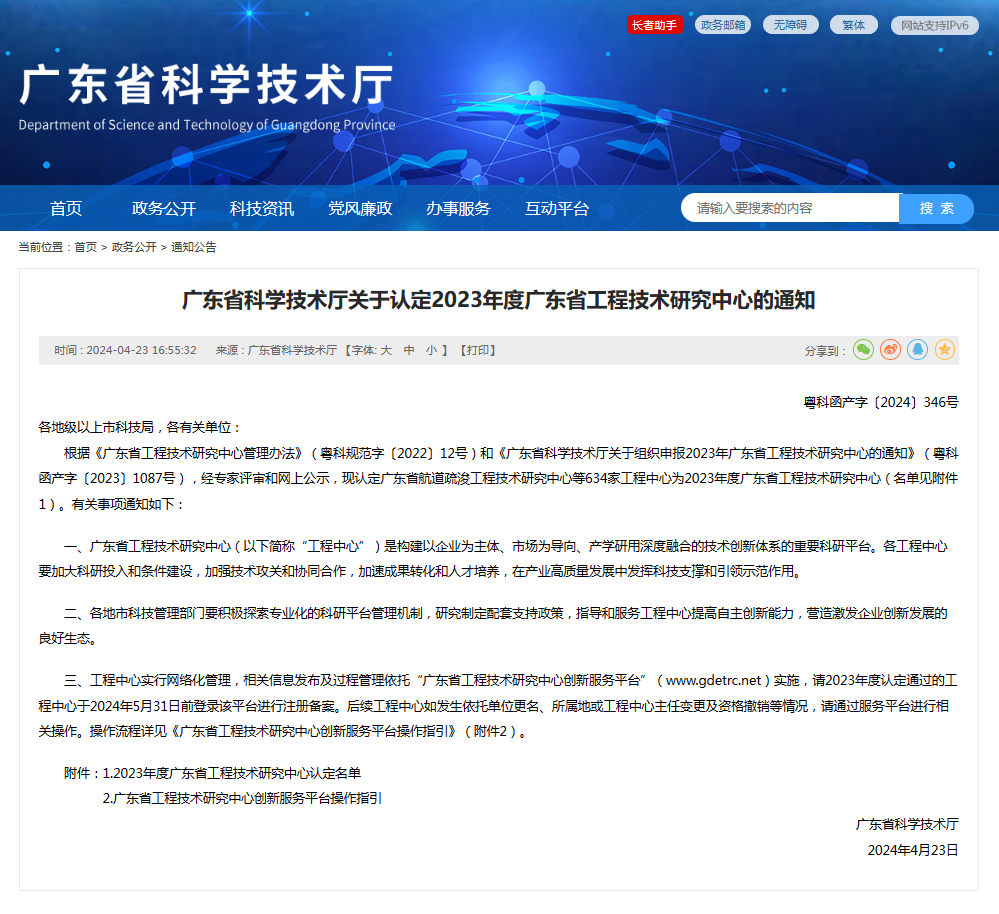4月23日,廣東省科學(xué)技術(shù)廳正式公布了“2023年度廣東省工程技術(shù)研究中心認(rèn)定名單”。公司申報的“廣東省大型公共建筑綠色低碳技術(shù)工程技術(shù)研究中心”(以下簡稱“大型公共建筑綠色低碳技術(shù)中心”)正式被認(rèn)定為2023年度廣東省工程技術(shù)研究中心(以下簡稱“工程中心”)。